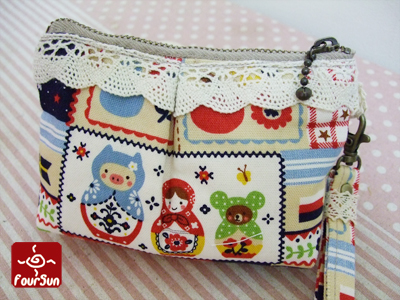 前片口金布 Four Sun取了和手機袋正面一樣的花色